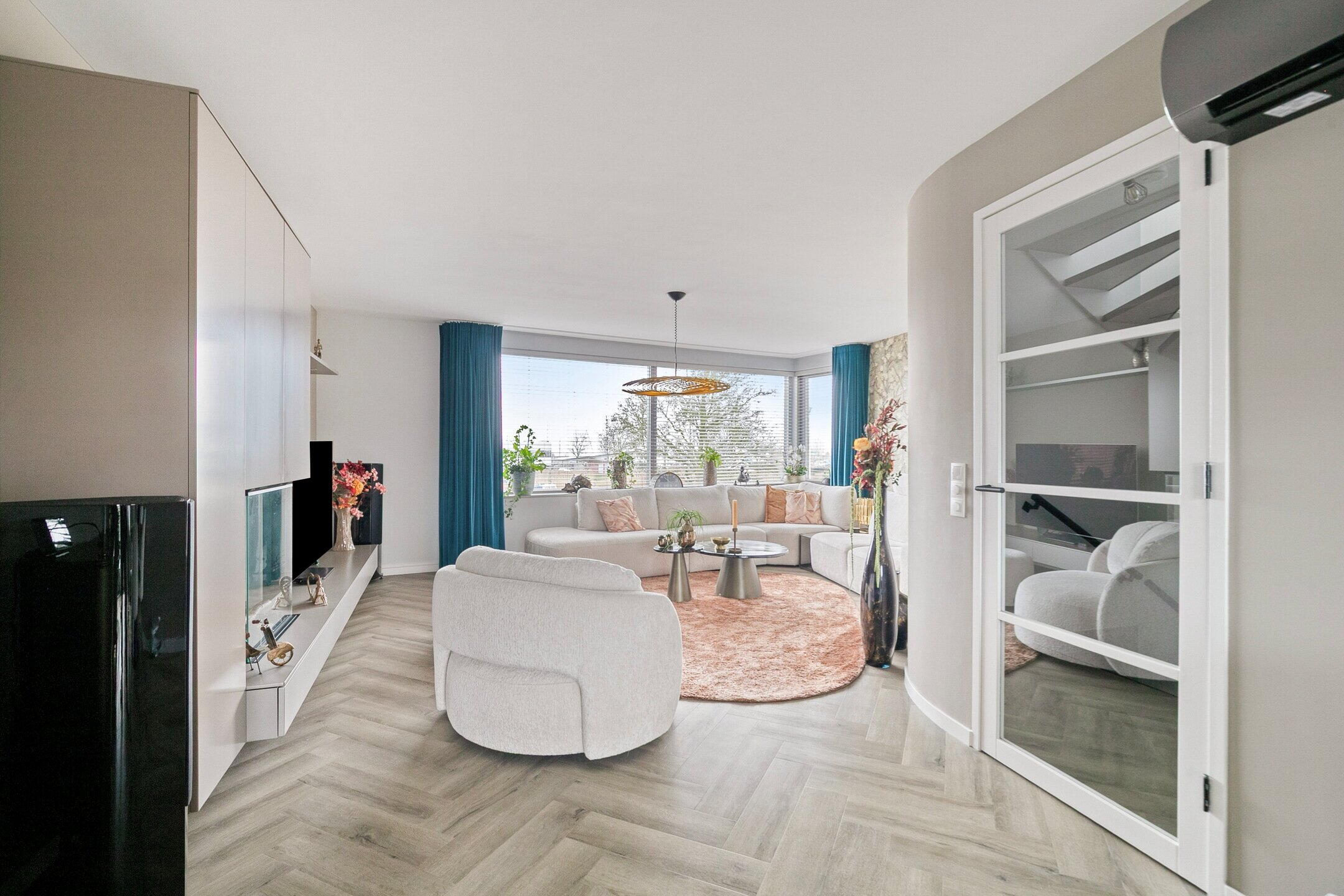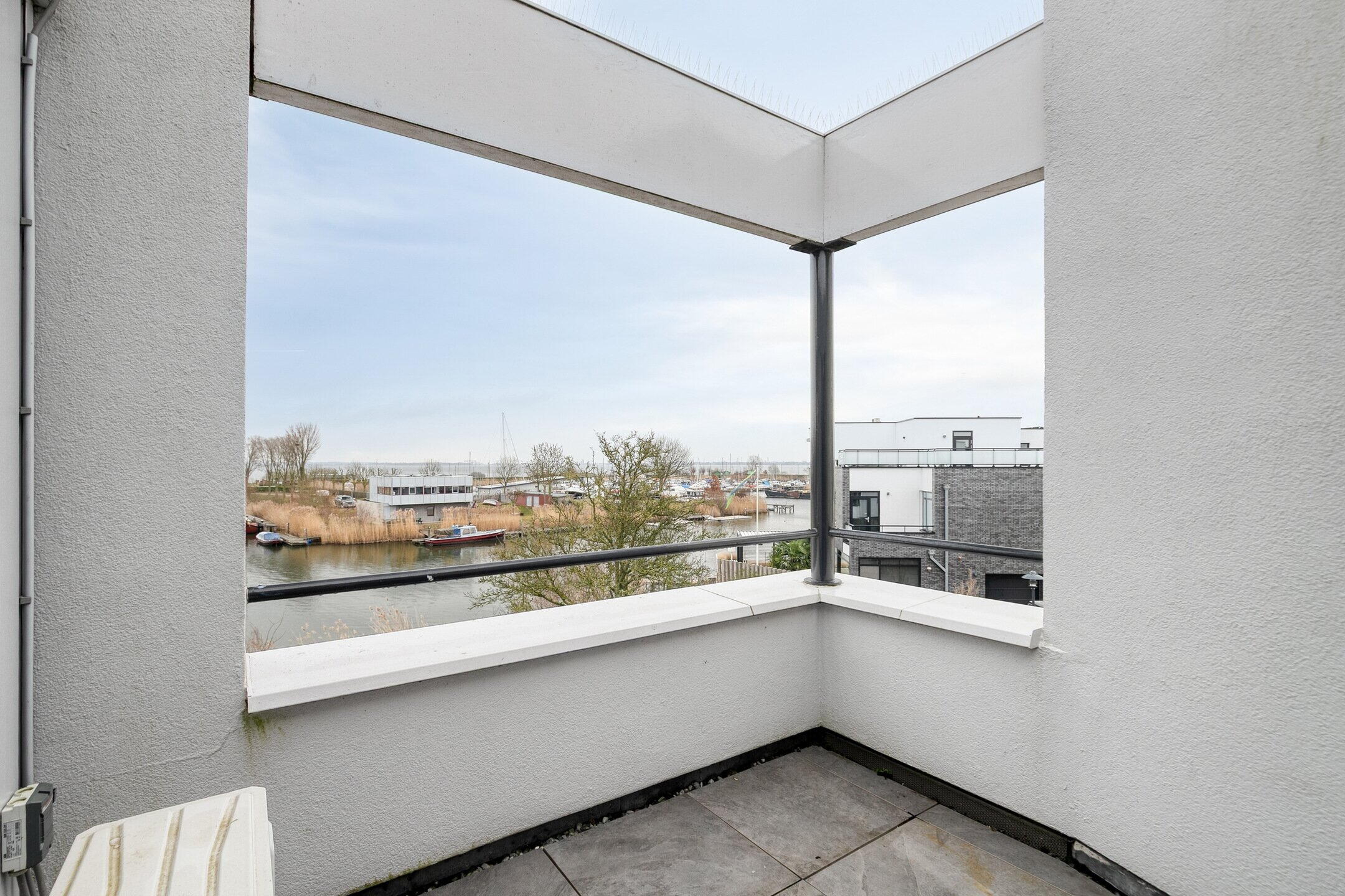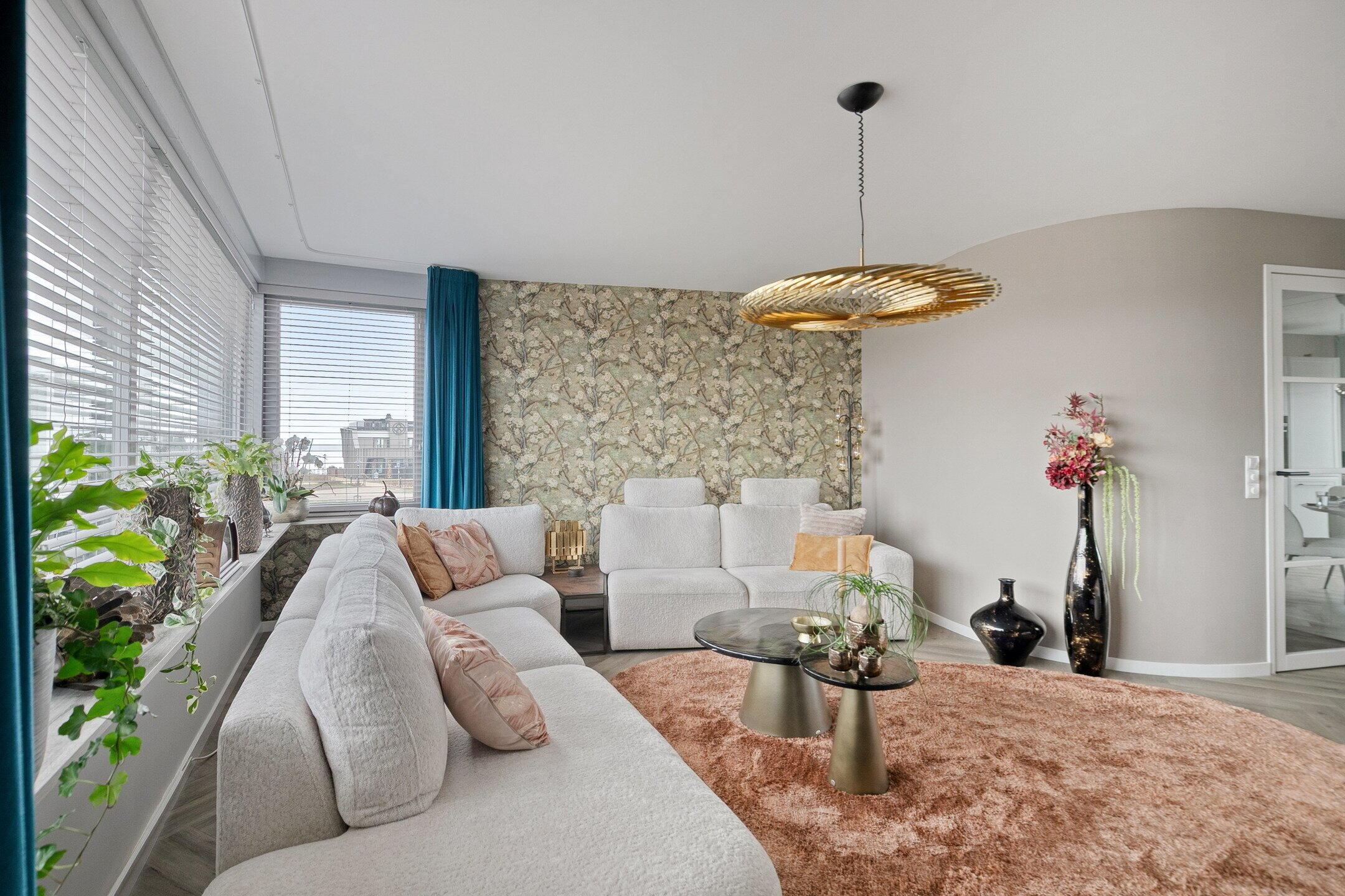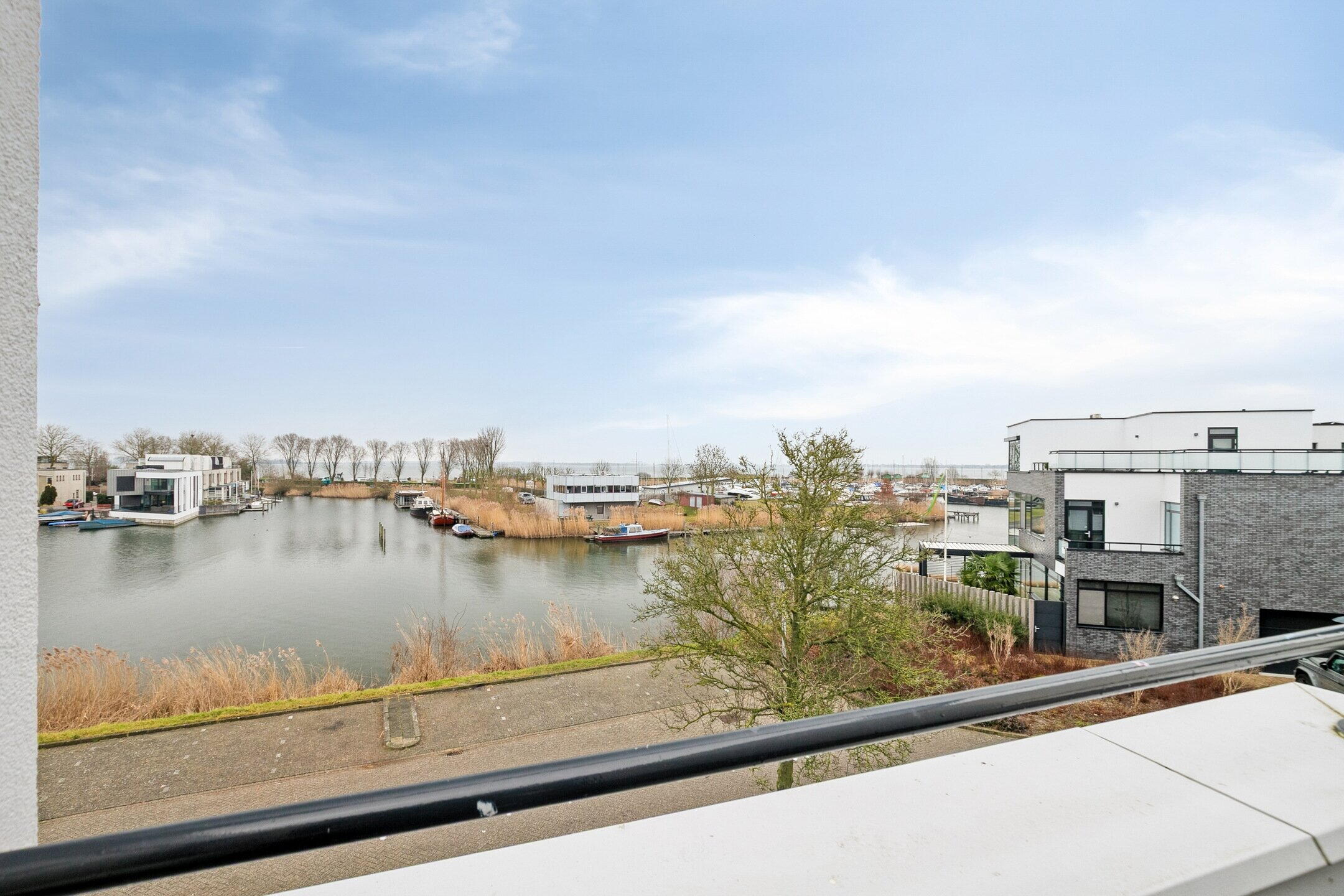 De woonverdieping is gesitueerd op de eerste verdieping en vormt het hart van de woning. Hier bevindt zich de sfeervolle woonkamer, welke een bijzondere ronding heeft en voorzien is van een stijlvolle sfeerhaard, airconditioning en comfortabele vloerverwarming. De grote raampartijen zorgen voor een prachtige lichtinval en een fenomenaal uitzicht over het water en de haven. De moderne keuken is hoogwaardig afgewerkt en voorzien van oa. een keramische kookplaat, vaatwasser, combi-oven en quooker en vormt een harmonieus geheel met de leefruimte, waardoor een open en uitnodigende woonomgeving ontstaat.