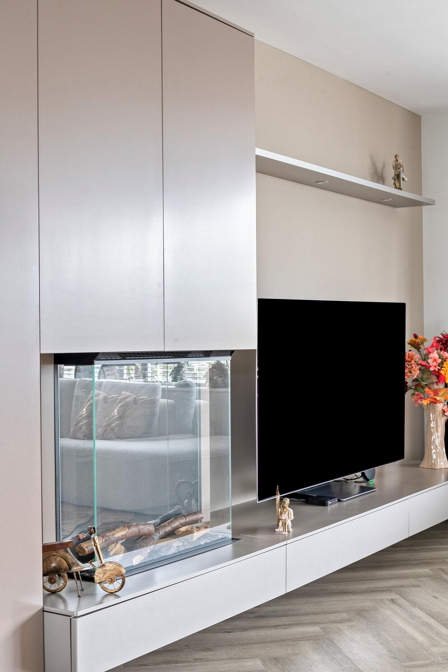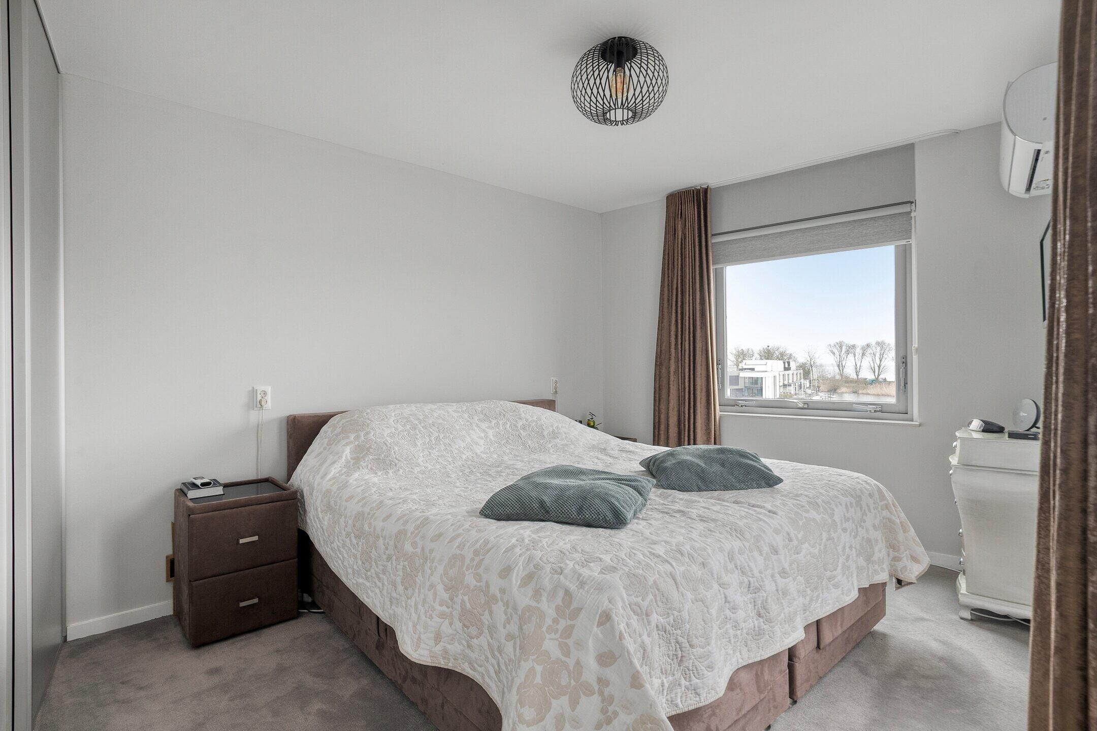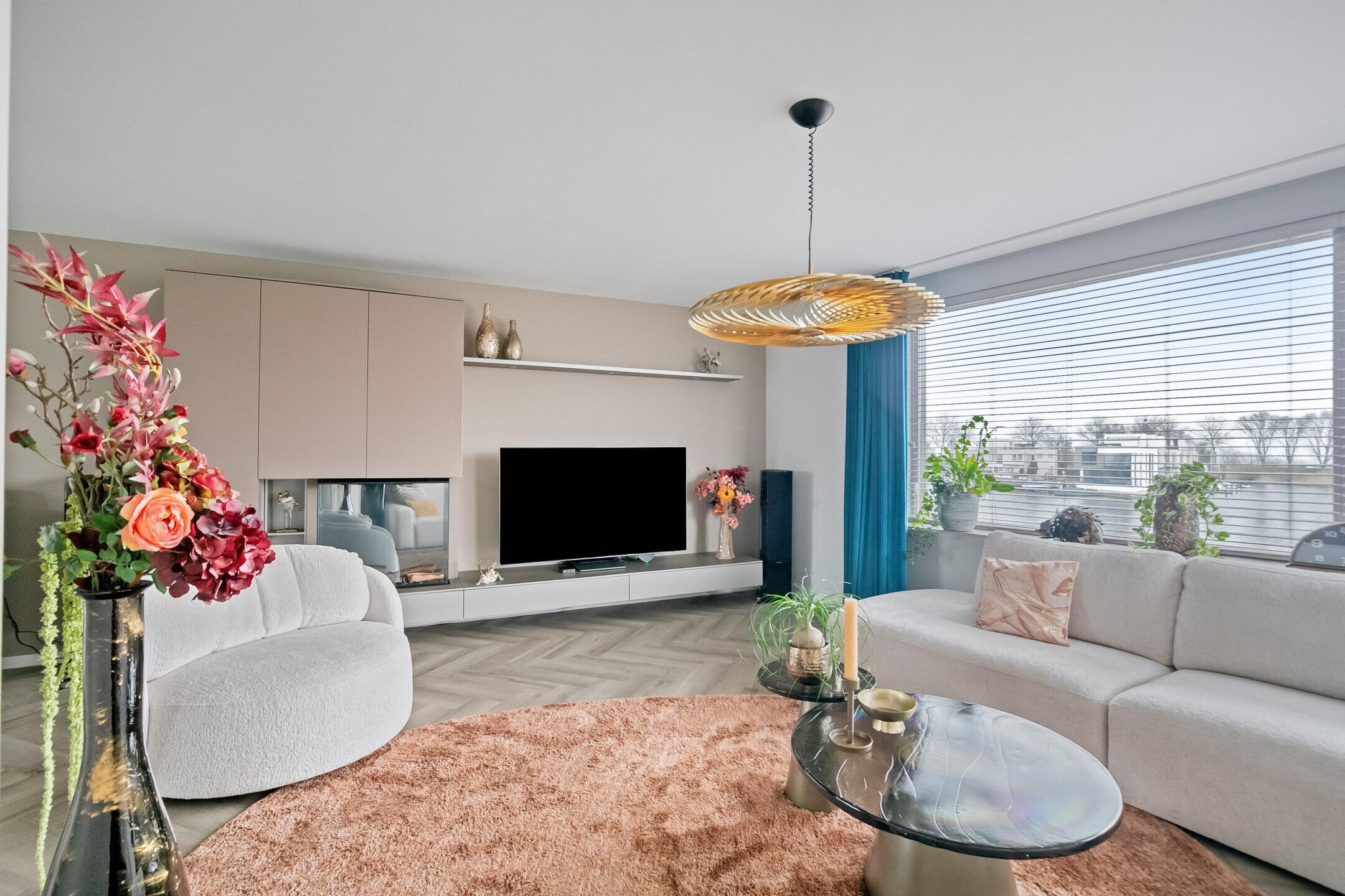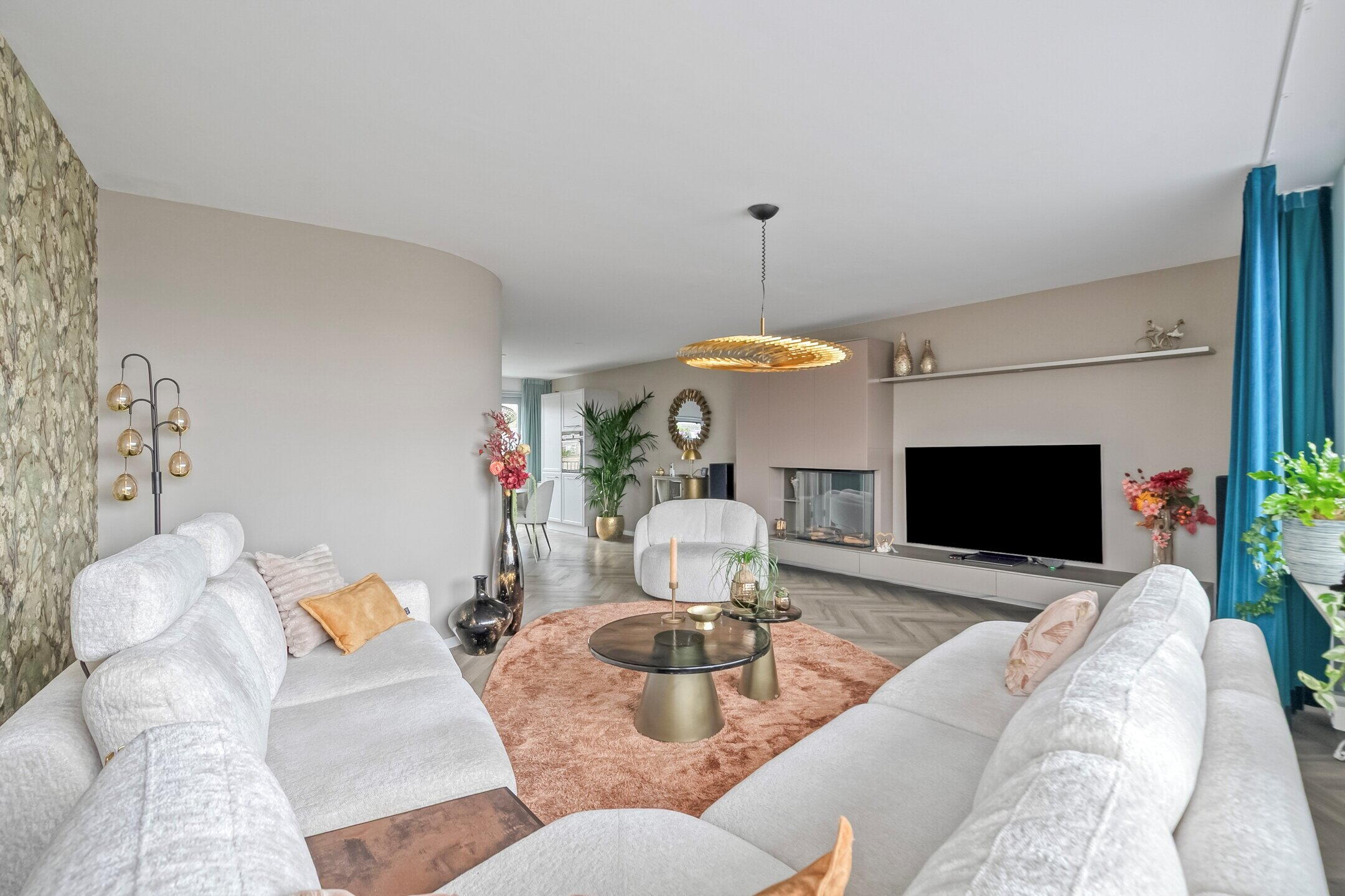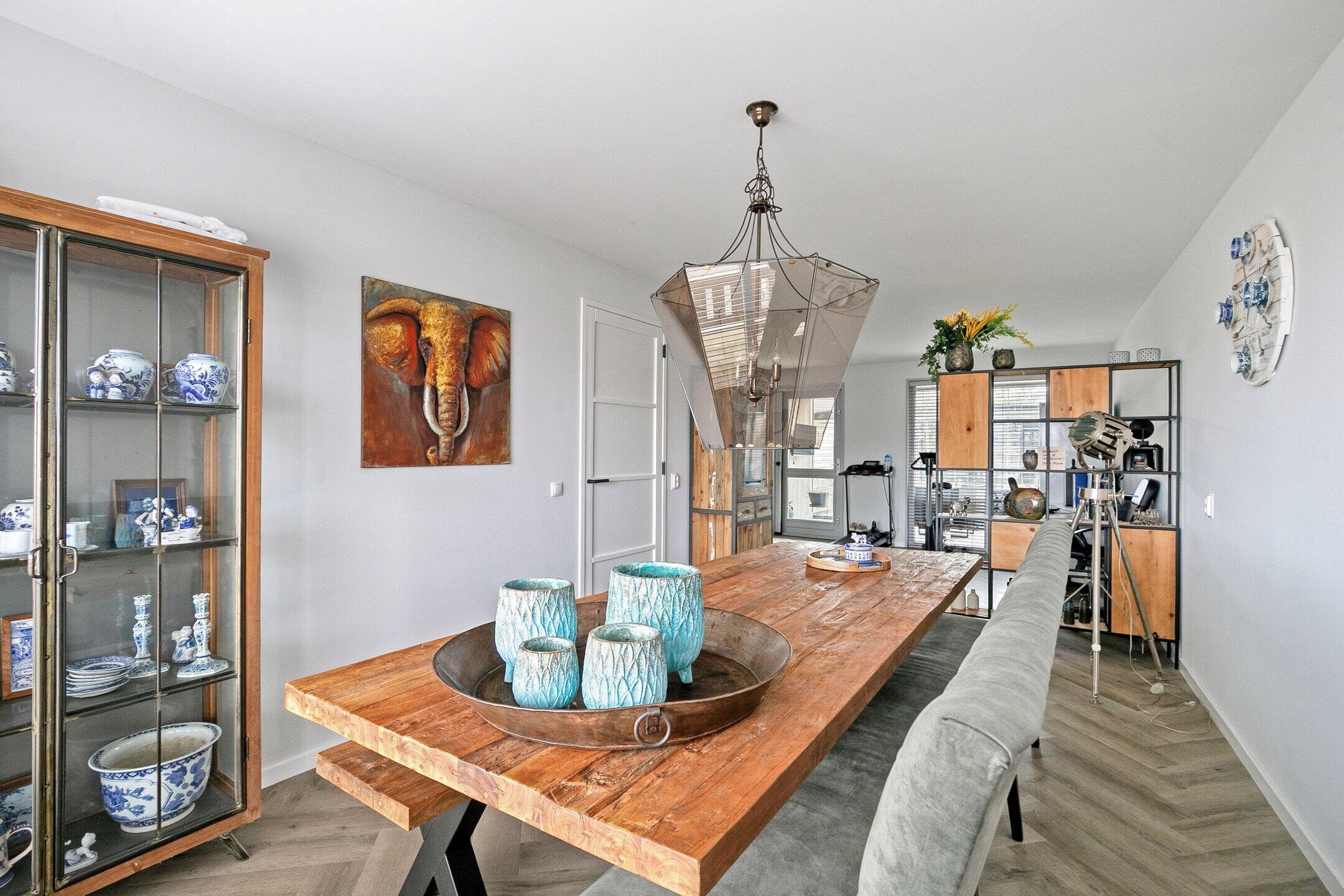 De woonverdieping is gesitueerd op de eerste verdieping en vormt het hart van de woning. Hier bevindt zich de sfeervolle woonkamer, welke een bijzondere ronding heeft en voorzien is van een stijlvolle sfeerhaard, airconditioning en comfortabele vloerverwarming. De grote raampartijen zorgen voor een prachtige lichtinval en een fenomenaal uitzicht over het water en de haven. De moderne keuken is hoogwaardig afgewerkt en voorzien van oa. een keramische kookplaat, vaatwasser, combi-oven en quooker en vormt een harmonieus geheel met de leefruimte, waardoor een open en uitnodigende woonomgeving ontstaat.