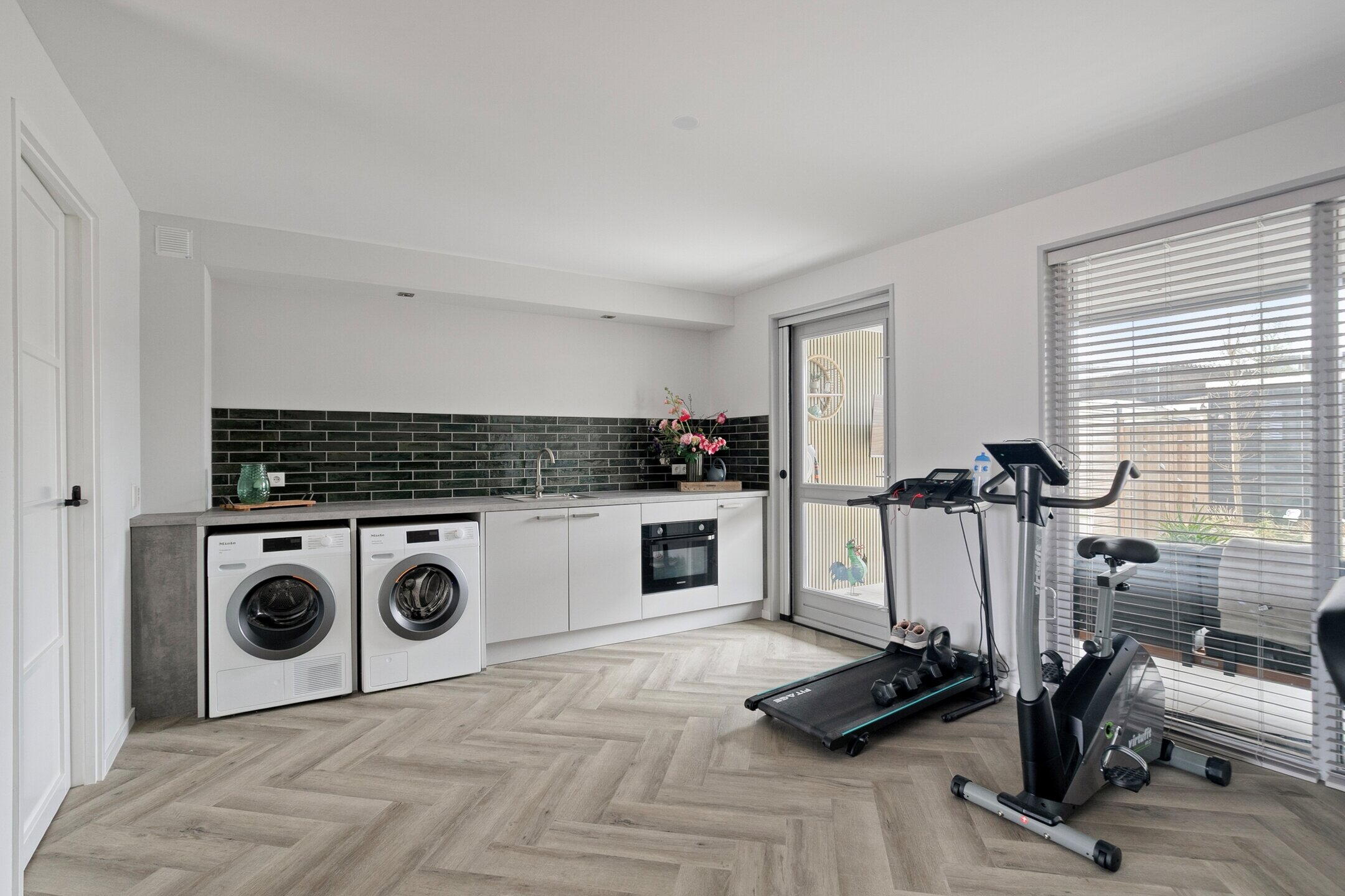 Wat deze woning extra bijzonder maakt, is de multifunctionele indeling. De begane grond is voorzien van een eigen keukenopstelling met aansluiting voor witgoed, een toiletruimte en een royale open ruimte die volledig naar wens kan worden ingericht, bijvoorbeeld als kantoor, praktijkruimte, hobbyruimte of extra slaapkamer. Vanuit deze ruimte heeft u toegang tot de prachtige serre met glazen wanden, waardoor u hier vrijwel het hele jaar door comfortabel kunt genieten van het buitenleven. De serre vormt een naadloze verbinding tussen binnen en buiten en biedt tevens toegang tot de achtertuin.