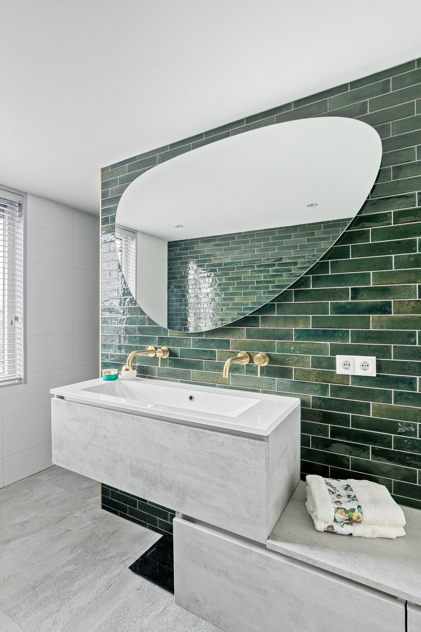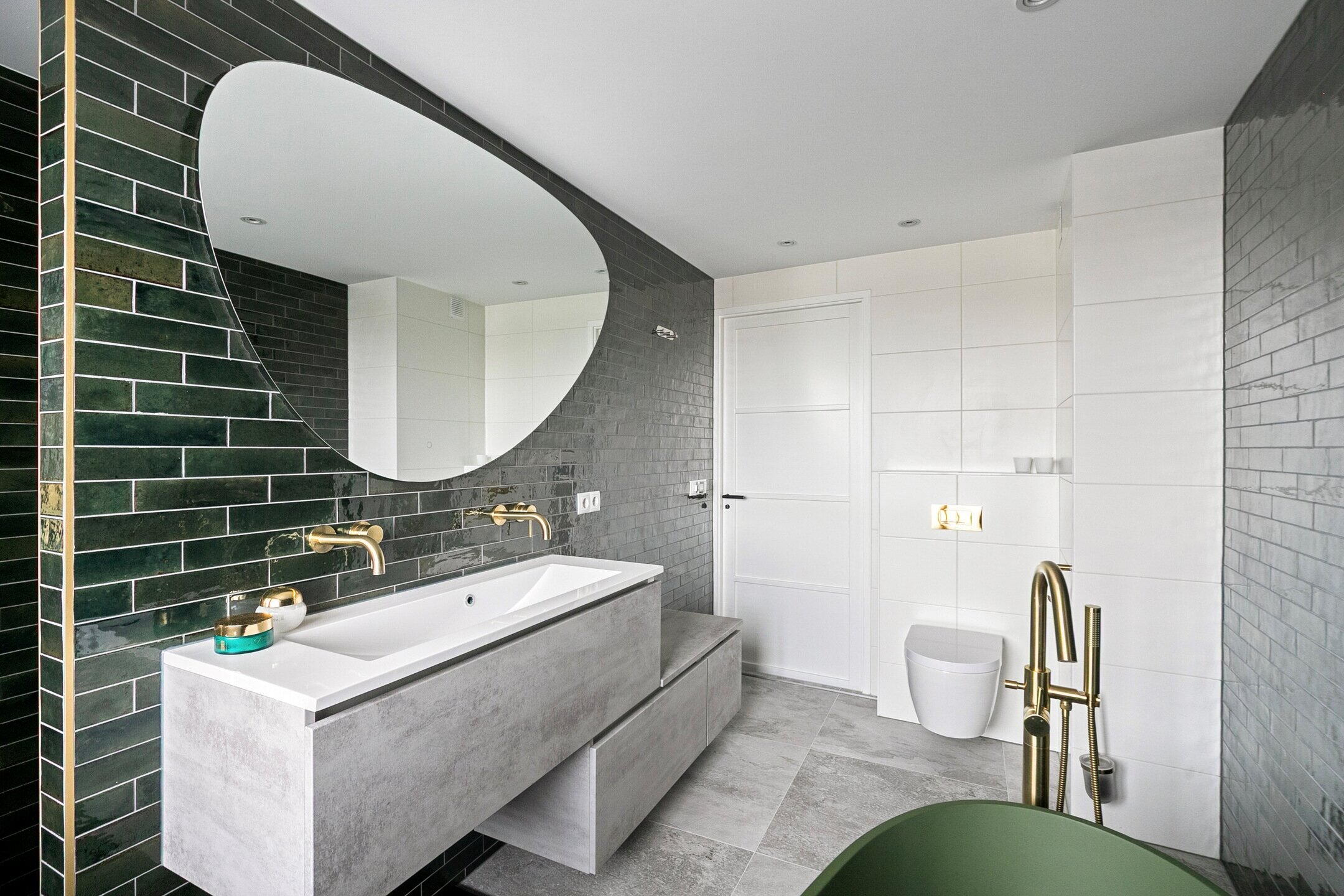 - Ligbad, toilet, wasbak, wastafelmeubel, walk in douche