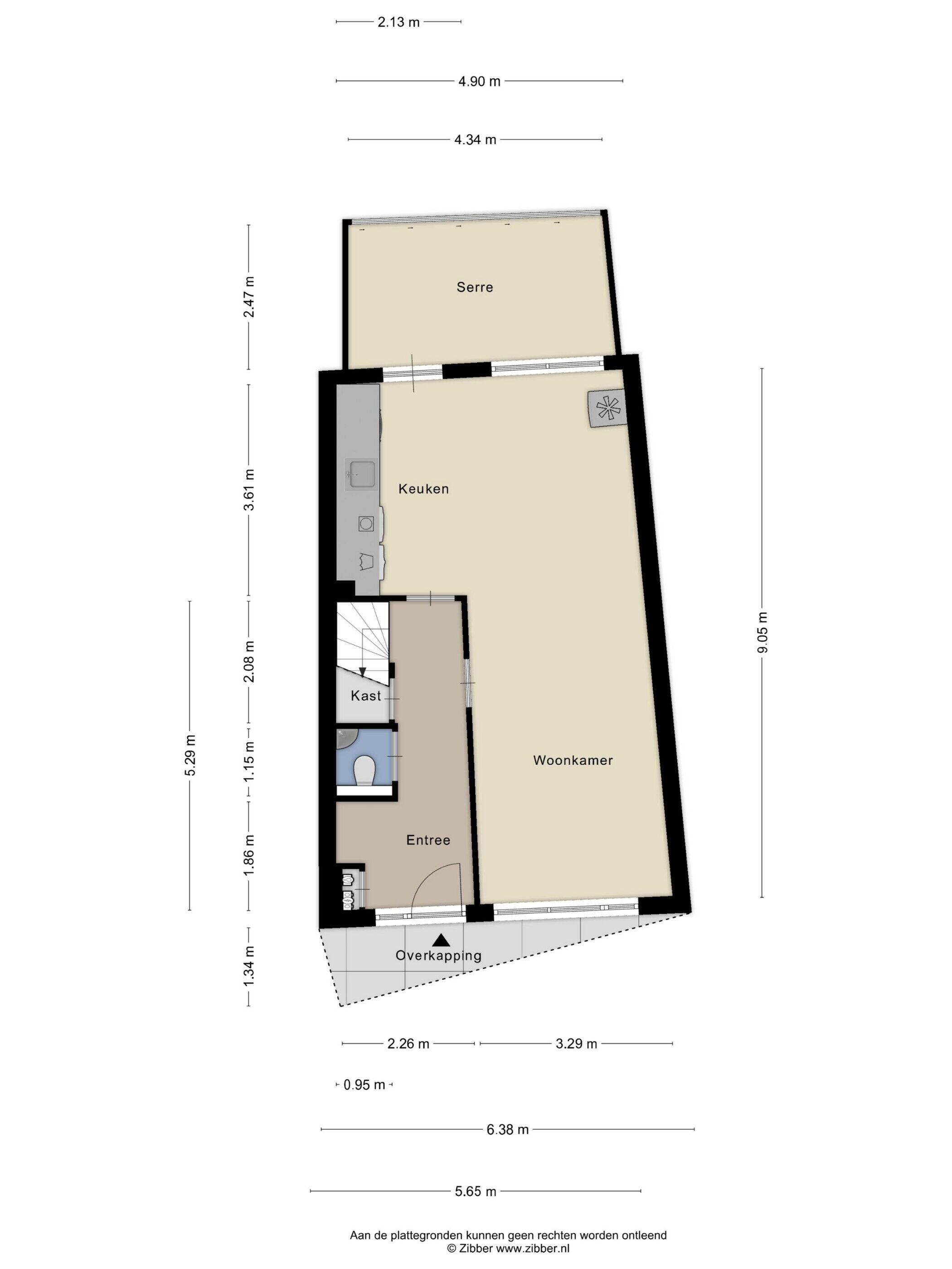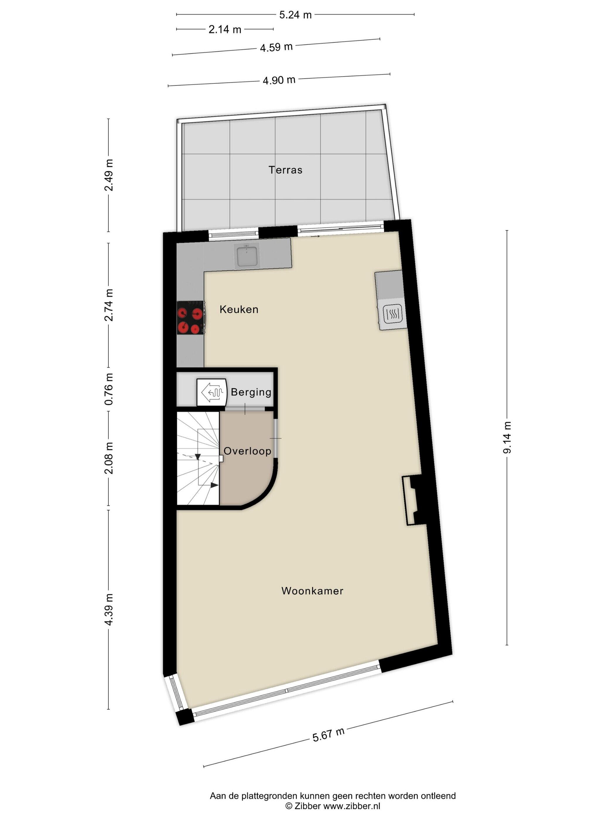- 56 m² (16 meter diep en 3.5 meter breed)